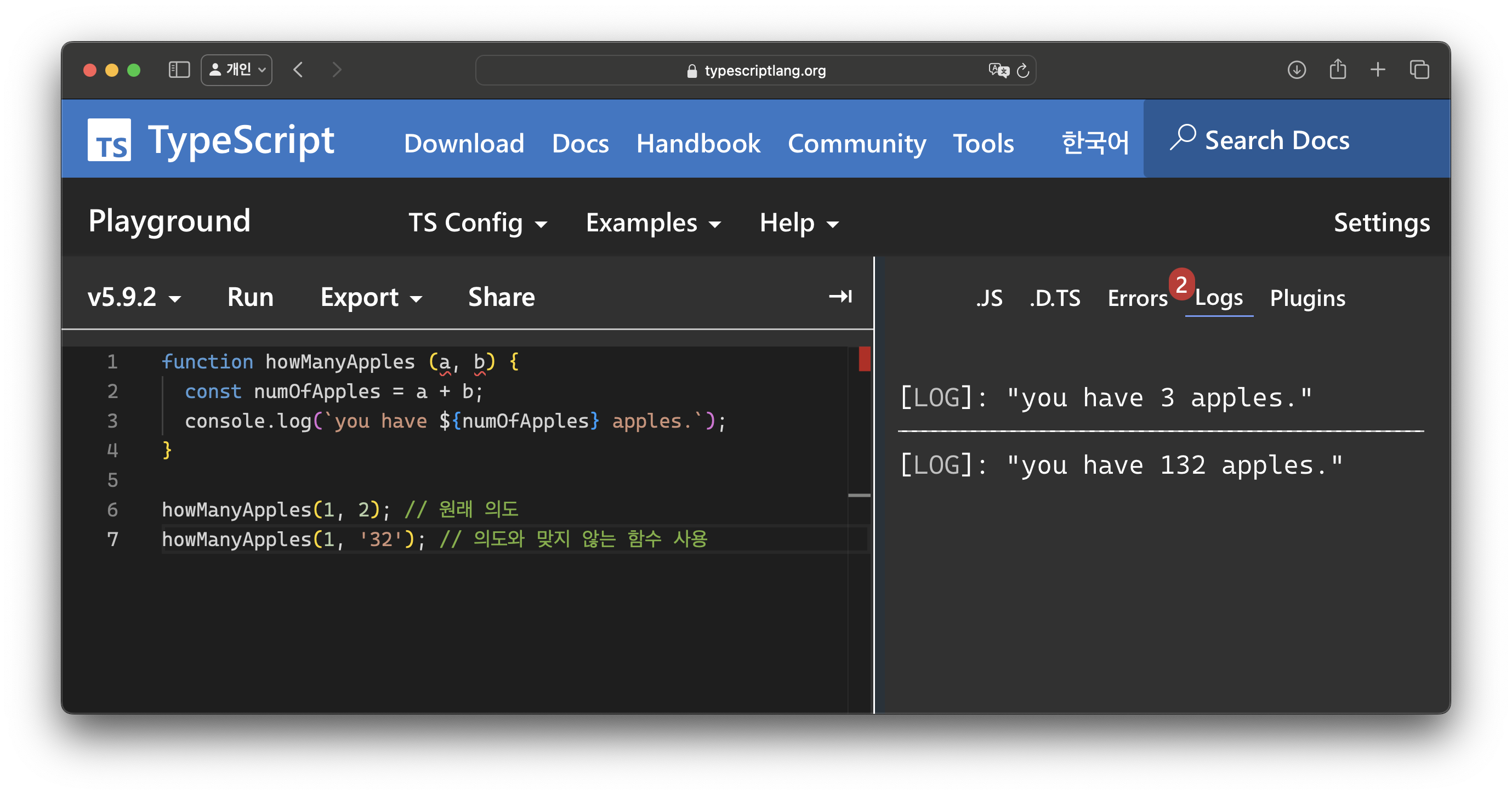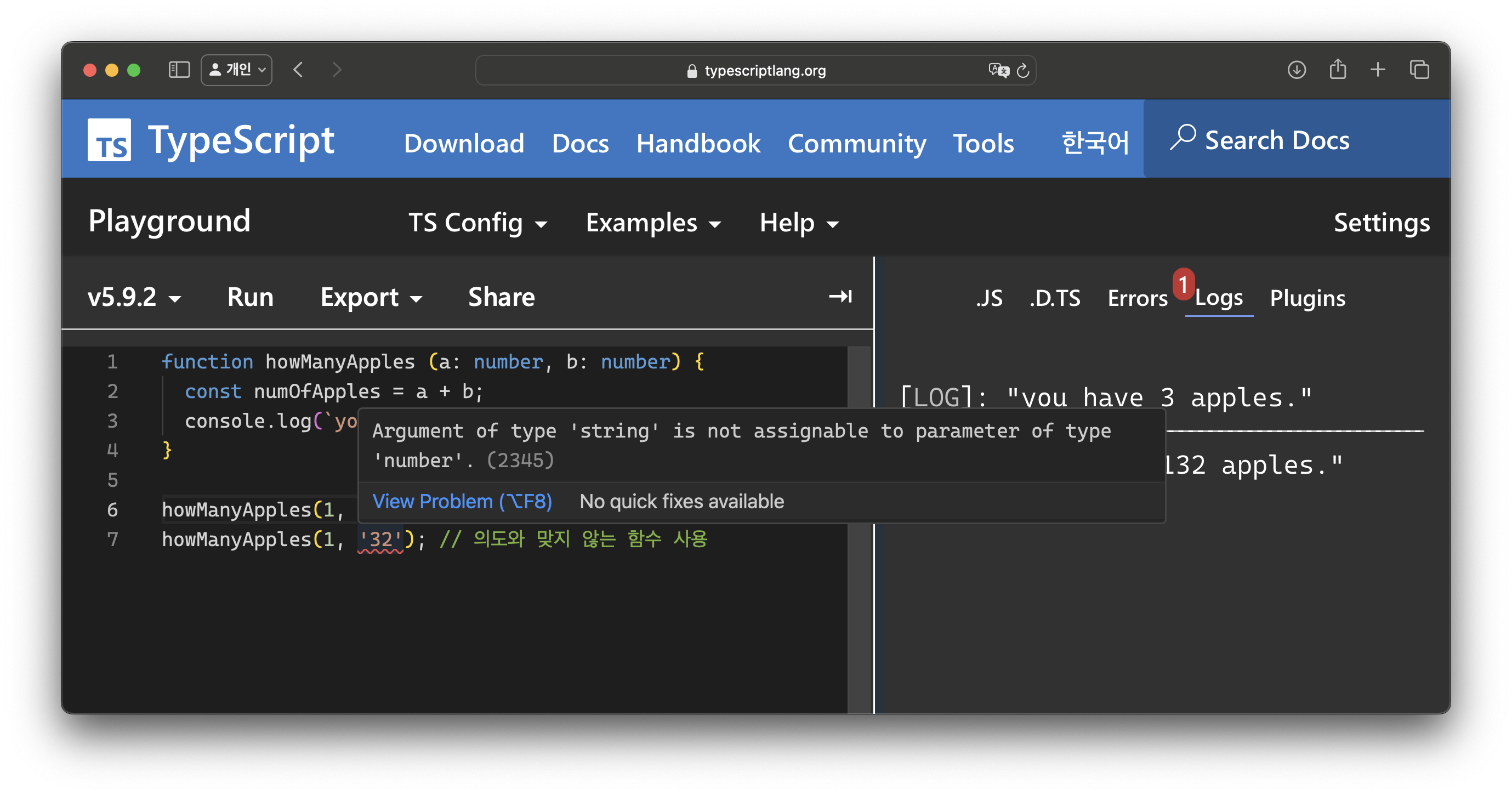 이게 바로 타입스크립트이다.