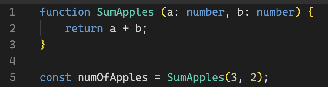 타입스크립트를 이용해서 두 인자를 숫자로 정의했기 때문에 IDE가 SumApples의 반환값의 타입을 숫자로 예측한다.